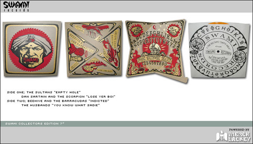 »die schönste 7″ der welt? ick hab sie… richtg schön bedruckt, fast dreidimensional, uiuiui mit den sultans, die ja auch wohl ne neue platte haben, allerdings bis jetzt nur auf CD? hmmmmm. feine seite, tolle bands, rock bless ya!«